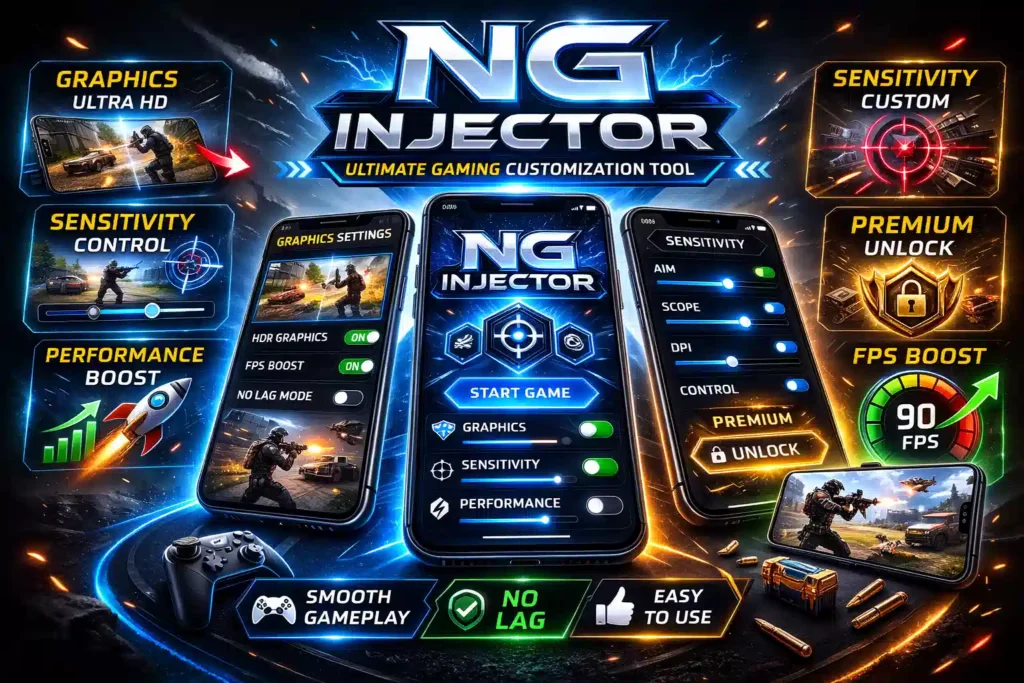 NG Injector is a customization tool designed to give gamers additional control over graphics, sensitivity and device performance settings. By allowing users to adjust these features the tool helps players experiment with configurations to find the setup that works best for their device.